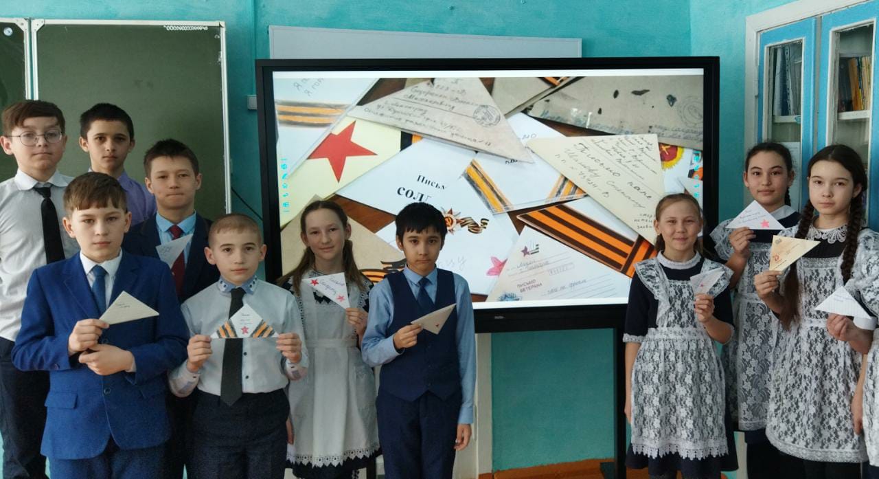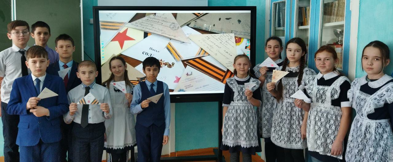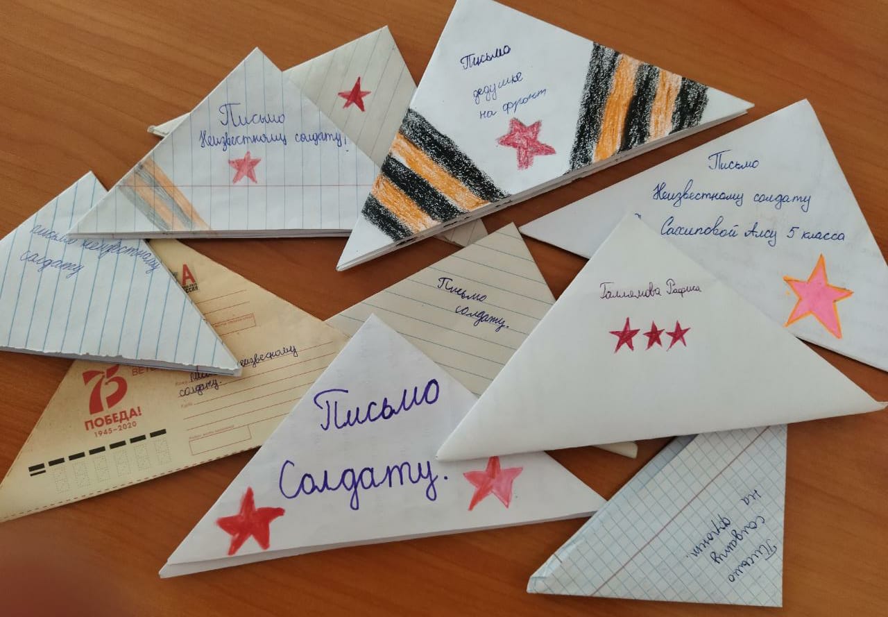 В школе проходит акция «Письмо защитнику Сталинграда». Ученики 5 класса приняли в ней самое активное участие. В этих маленьких детских треугольничках все: гордость, уважение и благодарность ветеранам, восхищение мужеством защитников Родины, размышления об истории страны, о подвигах отцов и дедов, о войне и мире: «Дорогой солдат! Ты же был совсем молодым, когда уходил на фронт. Как тебе удавалось сохранять спокойствие, принимать правильные решения? Это же было такое страшное время! Ты, жертвуя самым дорогим на земле: родителями, семьей, завоевал для нас мир». «Вы спасли нашу Родину и не отступили, спасли своих родных и весь народ». «Мы должны благодарить вас – тех, кто не жалея себя боролся с врагами лицом к лицу, рискуя своей жизнью, несмотря на холод и голод». «Нелегко досталась вам эта победа!» "Спасибо за мир! Спасибо за свободу!"