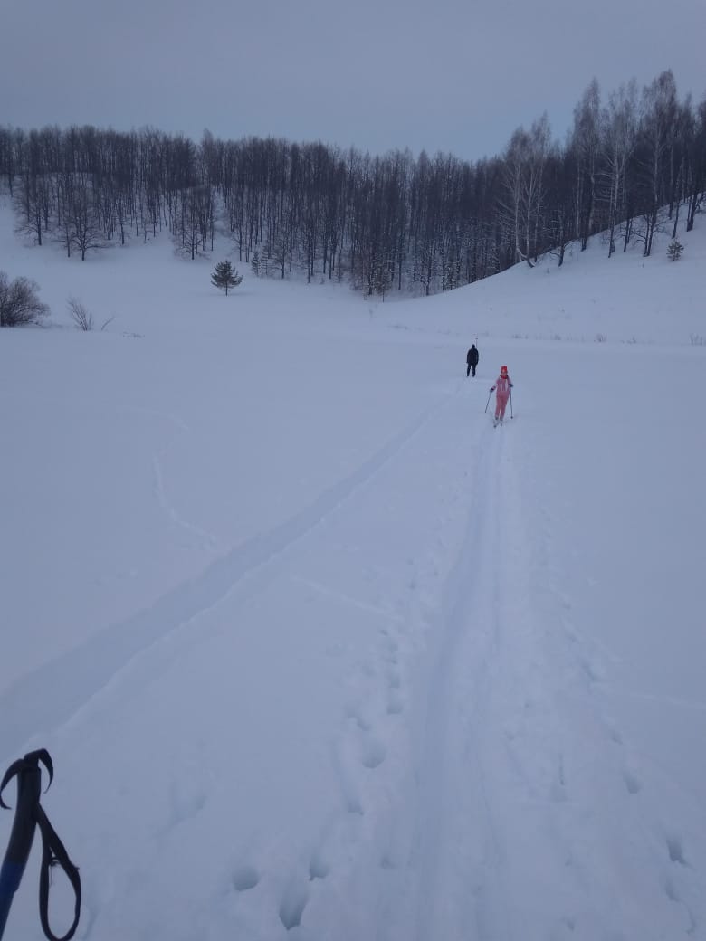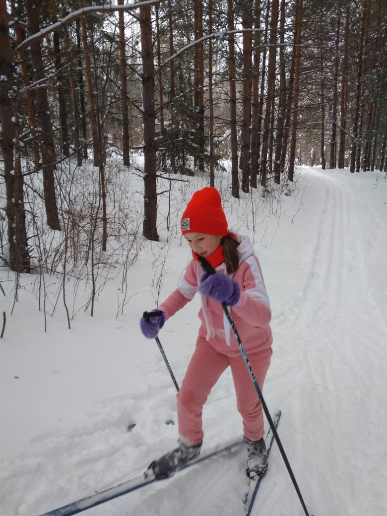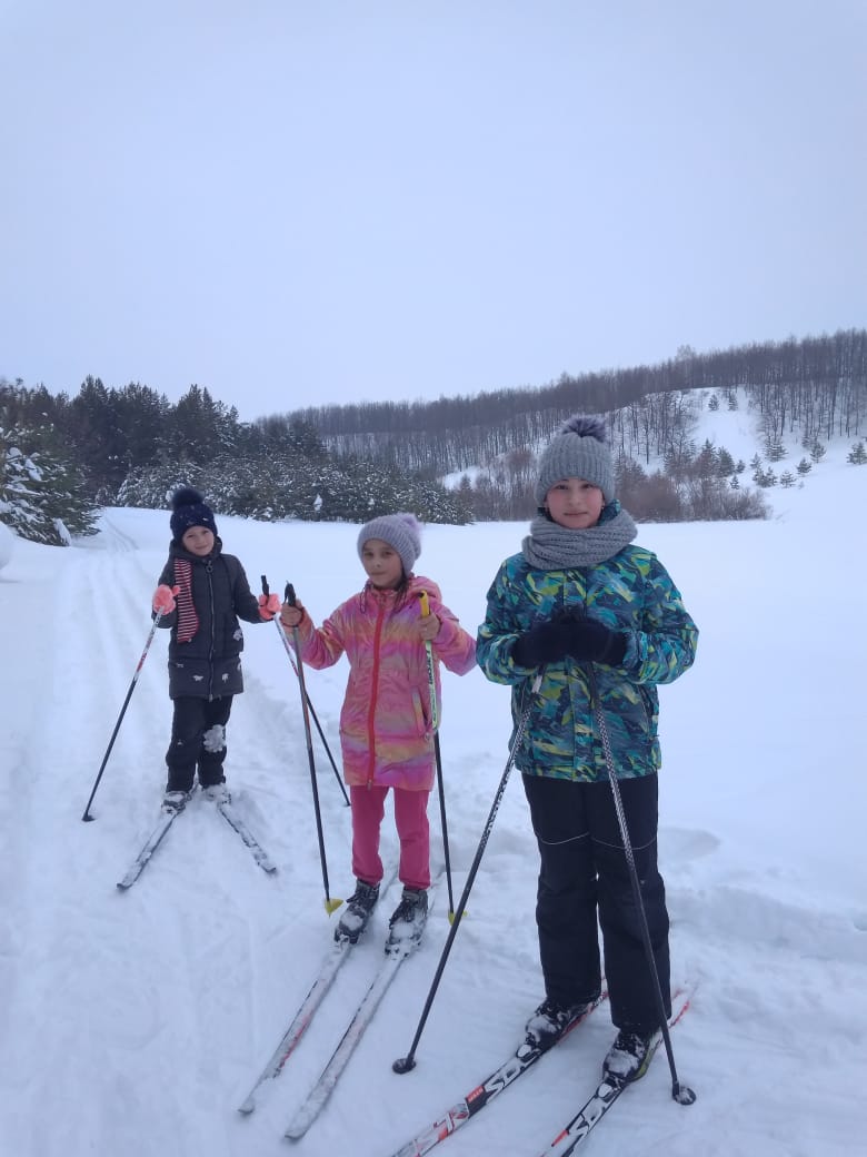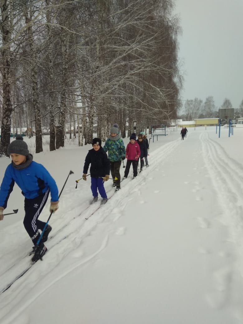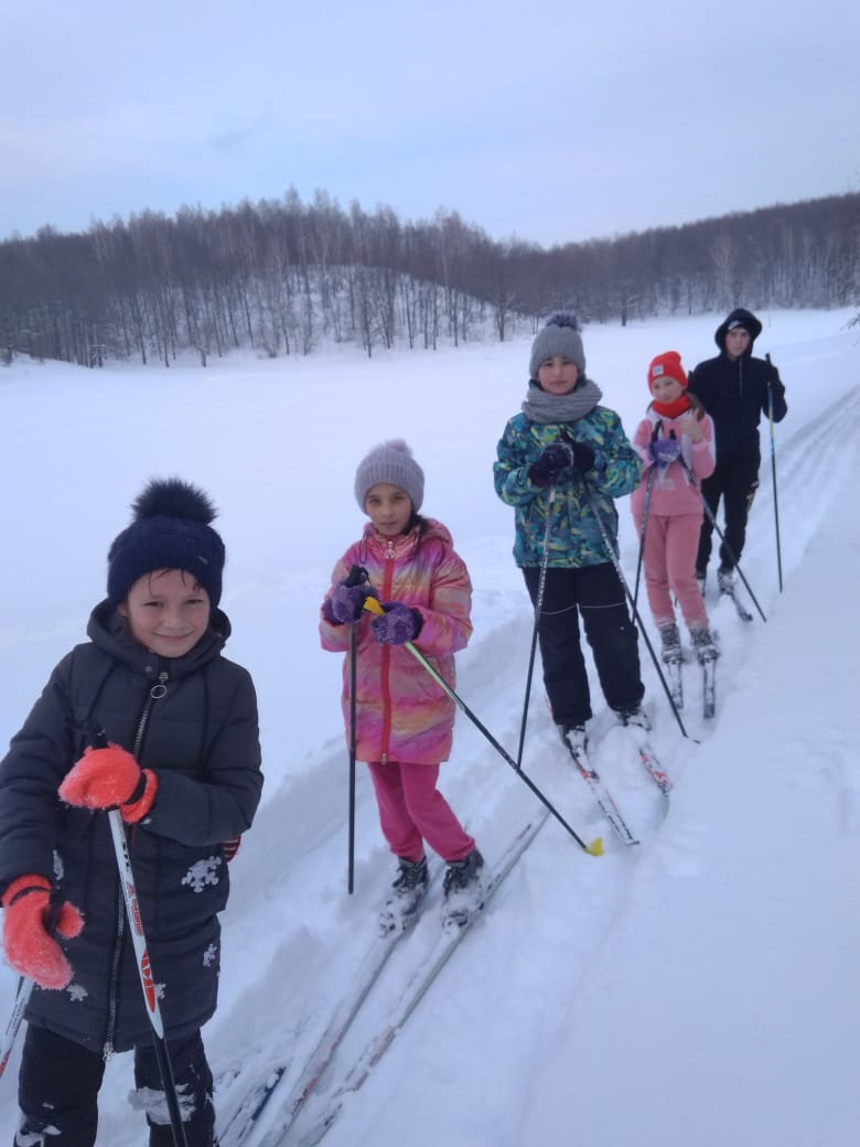 Члены кружка "Юный турист" на лыжной прогулке в лес