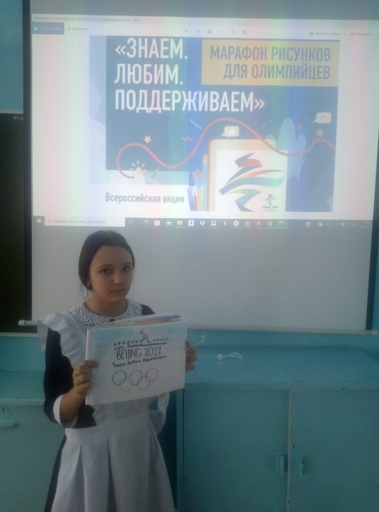 В рамках этой акции, обучающиеся МОБУ СОШ с. Старокуручево Бакалинского района нарисовали рисунки, в которых показали, как сильно поддерживают своих героев, гордятся своими спортсменами, радуются их победам и рекордам на Олимпийских Играх-2022 в Пекине.