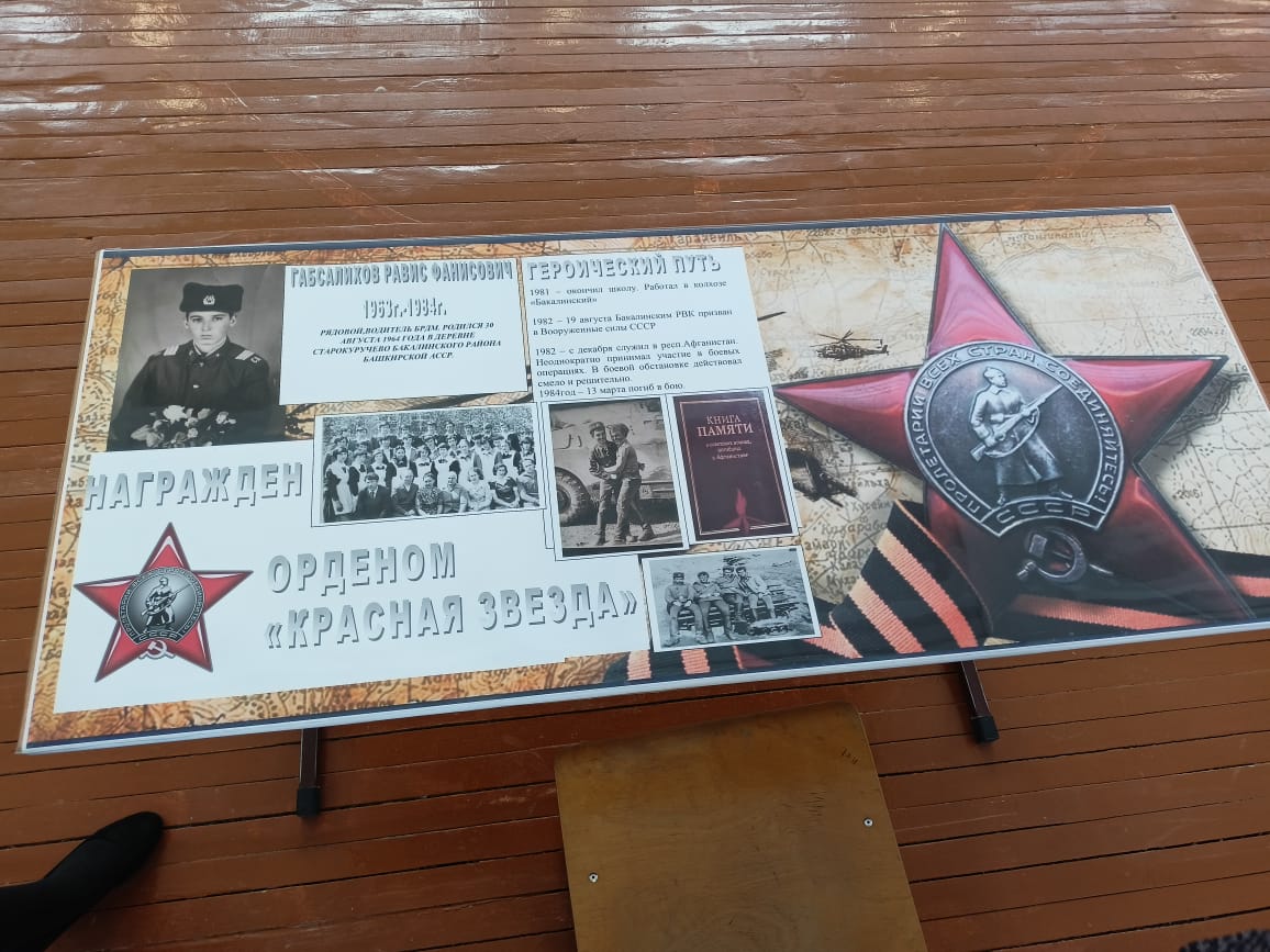 На мероприятии присутствовали ветераны боевых действий в Республике Афганистан Гайсин Р.Х., Калимуллин Ф.М. и родной брат Рависа Габсалихова Анис Габсалихов.