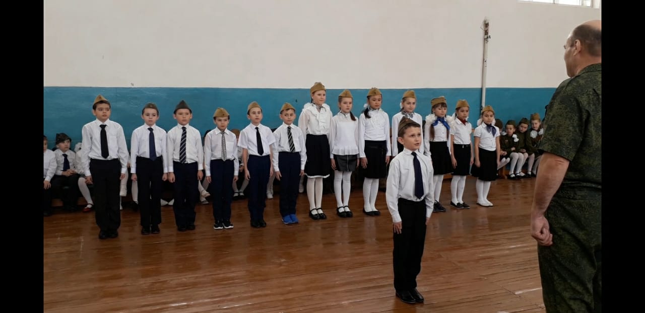 21 февраля в школе прошел смотр строя и песни среди учащихся 1-4 классов и воспитанников детского сада. Отряд каждого класса подготовил выступление по строевой подготовке. Конкуренция была очень высокой. Единая форма и выправка – всё радовало глаз.